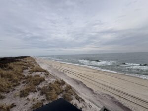"High tide in Shinnecock Bay causing overland flooding onto Dune Rd creating icy conditions. Town of Southampton officials have closed Dune Rd for westbound travel at the Ponquogue Bridge." |