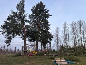"This was not on the coast. This is from a wind storm. In addition to this tree we lost large branches from other trees in the yard and other debris." |